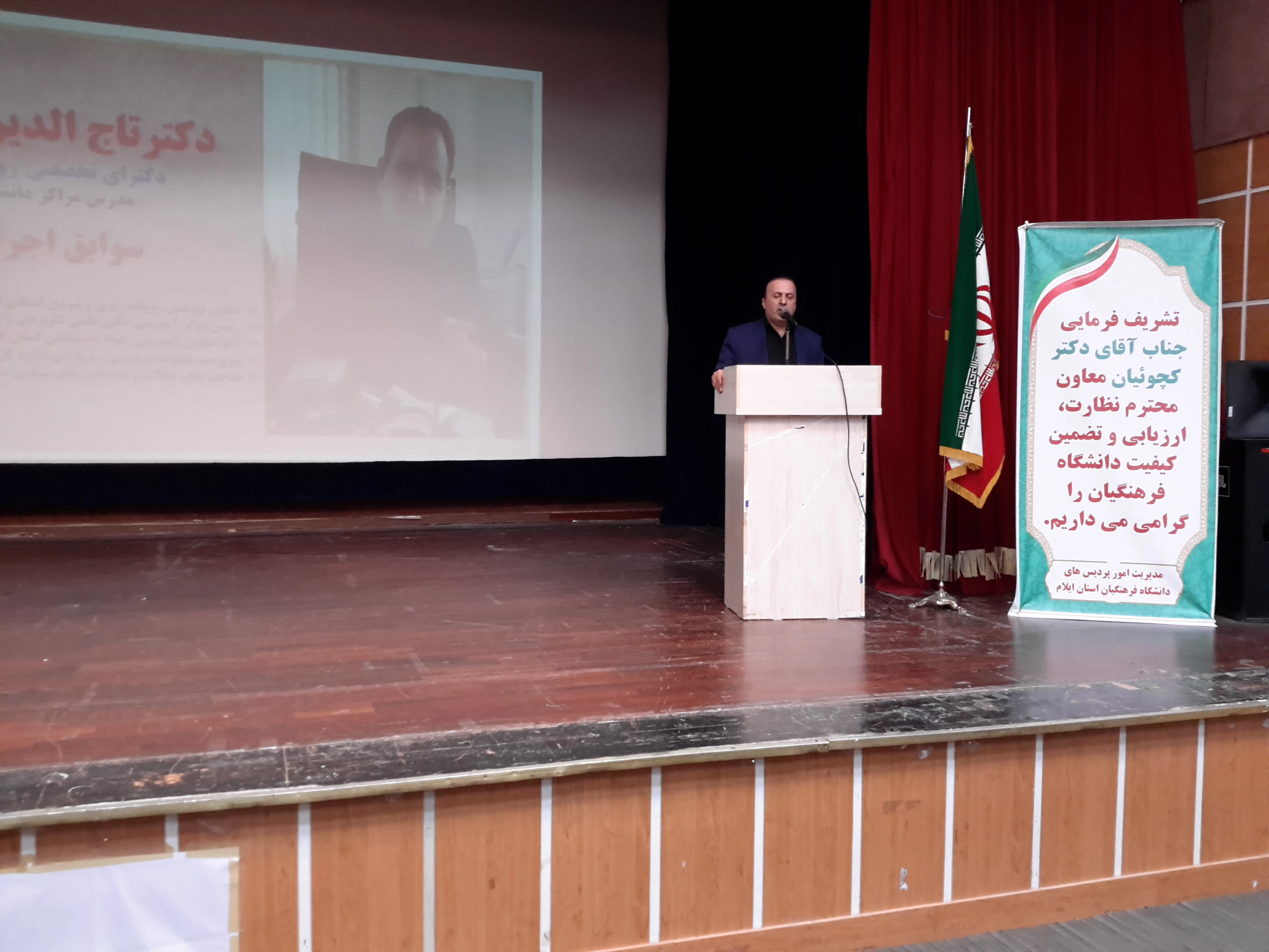 به گزارش روابط عمومی دانشگاه فرهنگیان استان ایلام؛ صبح روز شنبه مورخ 1398/06/16 راس ساعت 10 صبح با حضور دکتر کچوئیان معاون محترم نظارت و ارزیابی و تضمین کیفیت دانشگاه فرهنگیان، دکتر نوذری معاونت سیاسی، امنیتی و اجتماعی استانداری، و مسئولین نهاد ها و ادارات دولتی، اساتید و کارکنان دانشگاه مراسم تکریم و معارفه سرپرست مدیریت امور پردیس های استان ایلام در مکان سالن اجتماعات مجتمع فرهنگ و ارشاد اسلامی استان برگزار گردید