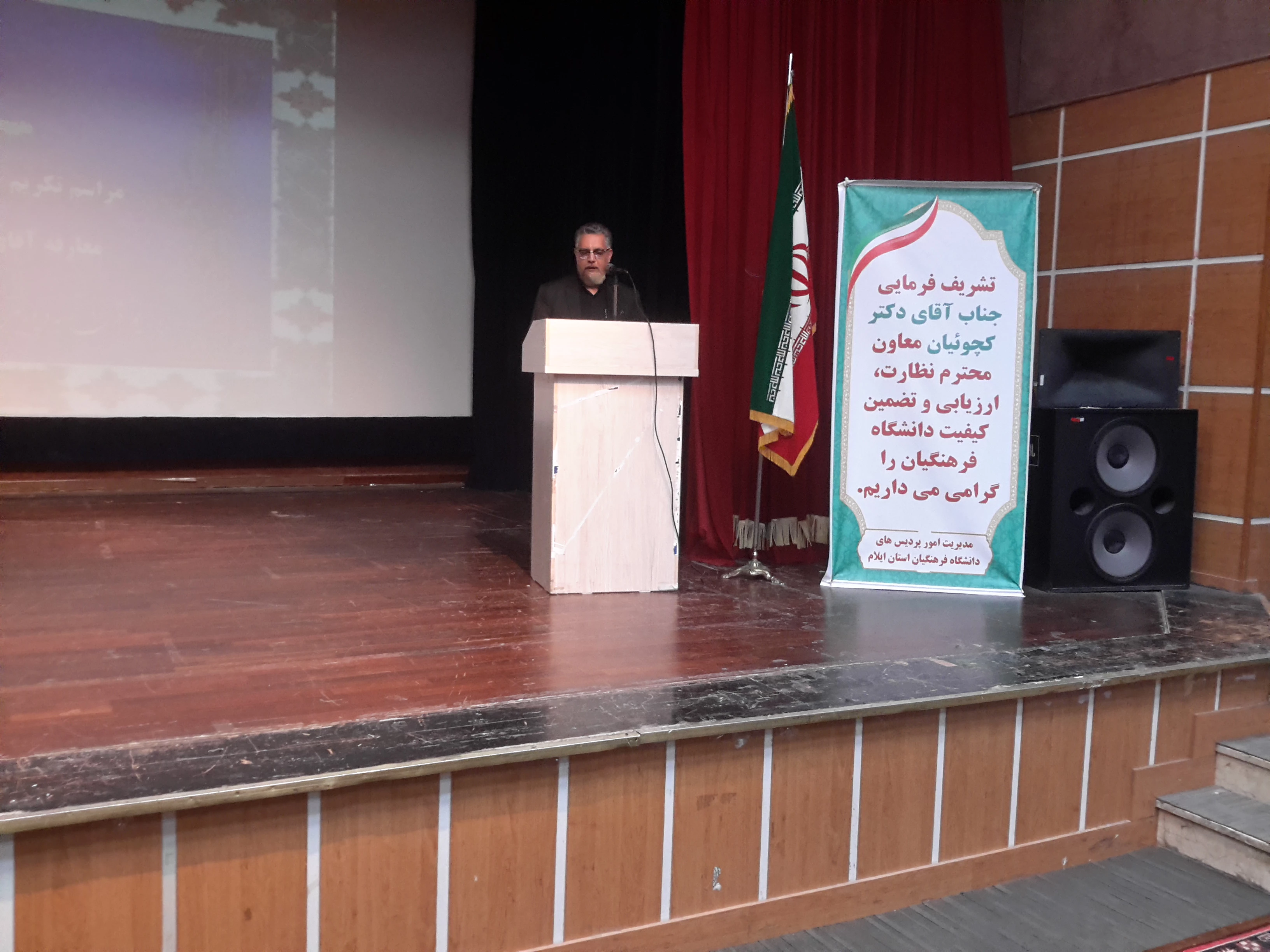 جناب آقای دکتر نوذری معاونت محترم سیاسی امنیتی و اجتماعی استانداری ایلام بیان داشت اگه سه تا ویژگی استان ایلام را بخواهیم نام ببریم یکی مجاهدت و مقاومت مردم ایلام در هشت سال دفاع مقدس و دوم حضور مردم در فعالیت های سیاسی و اجتماعی کشور و برجستگی سوم بحث اربعین که امروز این افتخار نصیب استان شده که میزبان زائرین آقا اباعبدالله الحسین(ع) باشیم وی اظهار داشت مظهر رشد و بالندگی هر کشوری آموزش است که در دانشگاه فرهنگیان این وظیفه خطیر تر و پررنگ تر است.