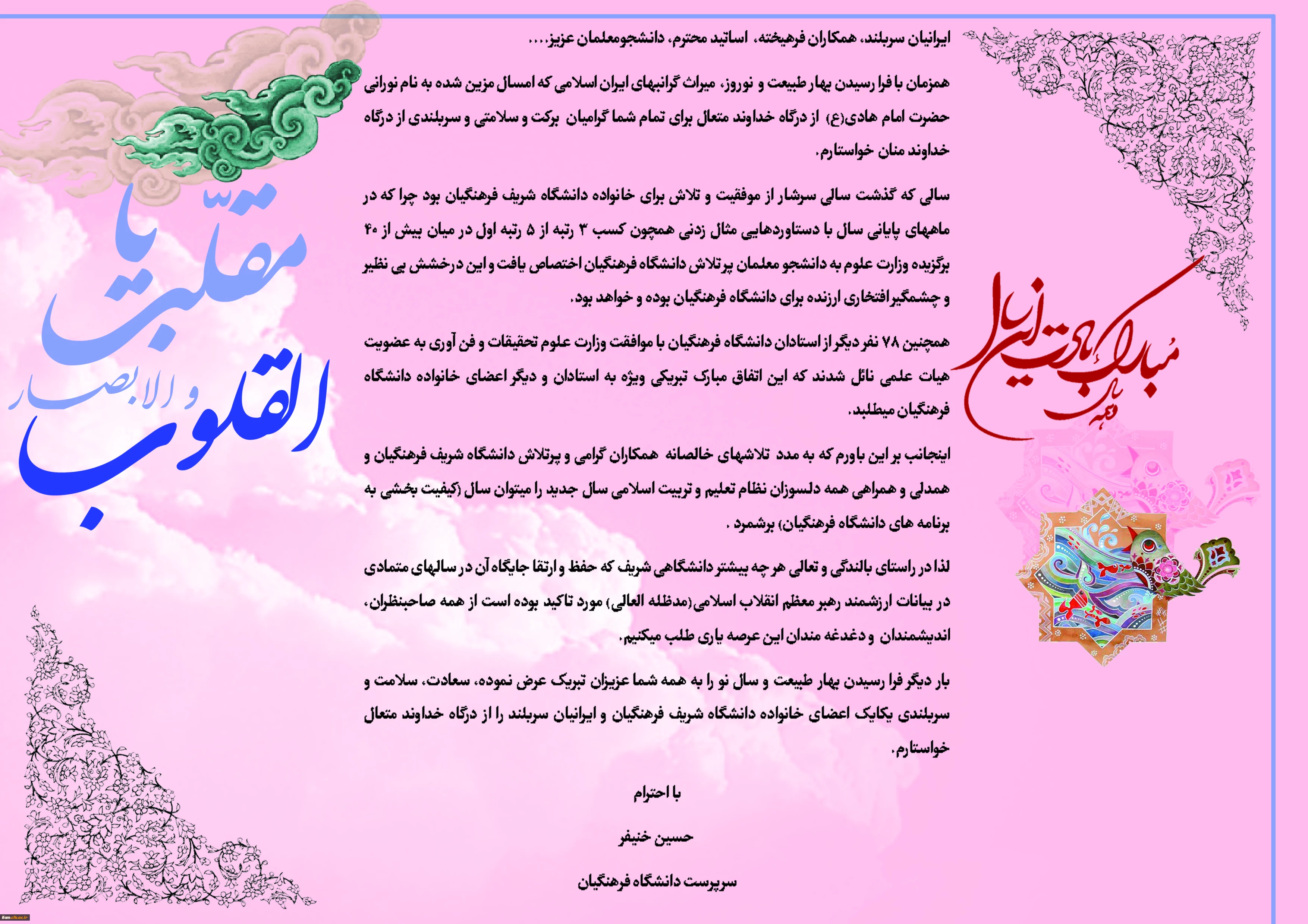 امتیاز دهید : سرپرست دانشگاه فرهنگیان در پیام آغاز سال نو تاکید کرد: سهشنبه 29 اسفند 1396 ساعت 11:42