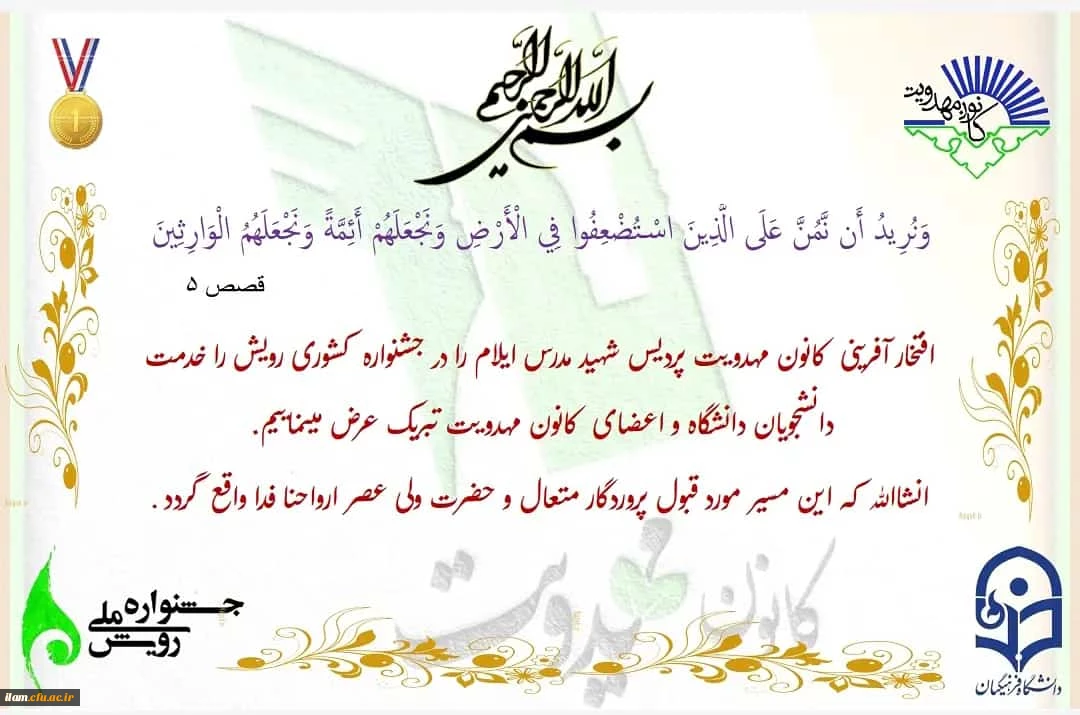افتخار آفرینی کانون مهدویت پردیس شهید مدرس دانشگاه فرهنگیان استان ایلام در جشنواره کشوری رویش