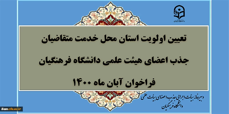 تعیین اولویت استان محل خدمت متقاضیان جذب اعضای هیأت علمی فراخوان آبان 1400 دانشگاه فرهنگیان 2