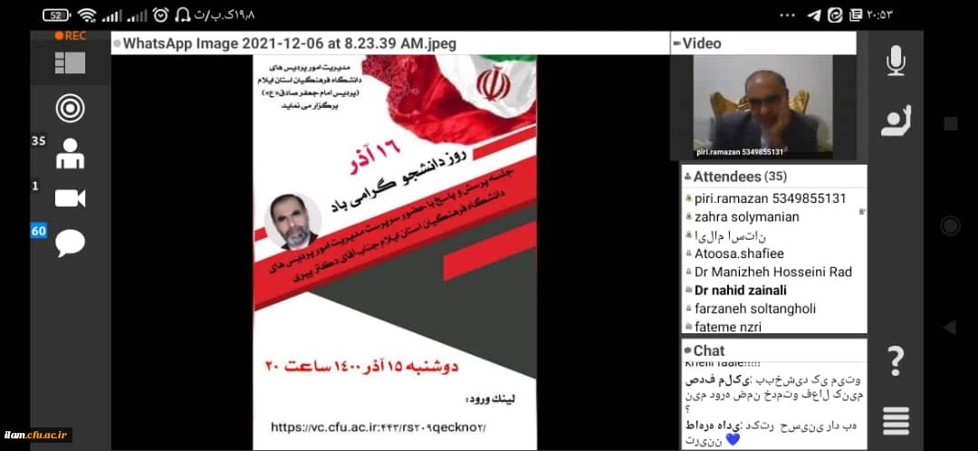 امتیاز دهید : نشست مجازی مدیریت دانشگاه فرهنگیان استان ایلام با دانشجومعلمان سهشنبه 16 آذر 1400 ساعت 22:20
