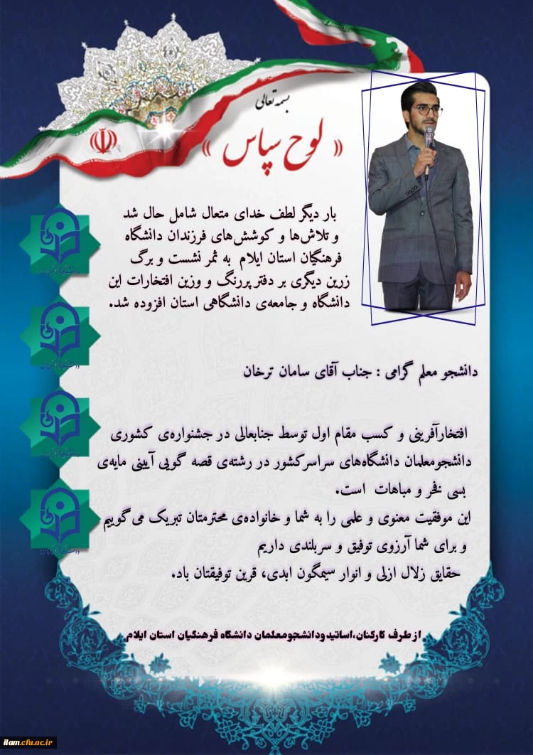 افتخار آفرینی دانشجو معلم دانشگاه فرهنگیان استان ایلام در جشنواره کشوری شعر و قصه 3