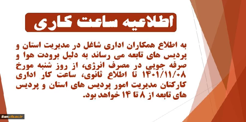 اطلاعیه ساعت کاری کارکنان اداری مدیریت امور پردیس های دانشگاه فرهنگیان استان ایلام و پردیس های تابعه 2