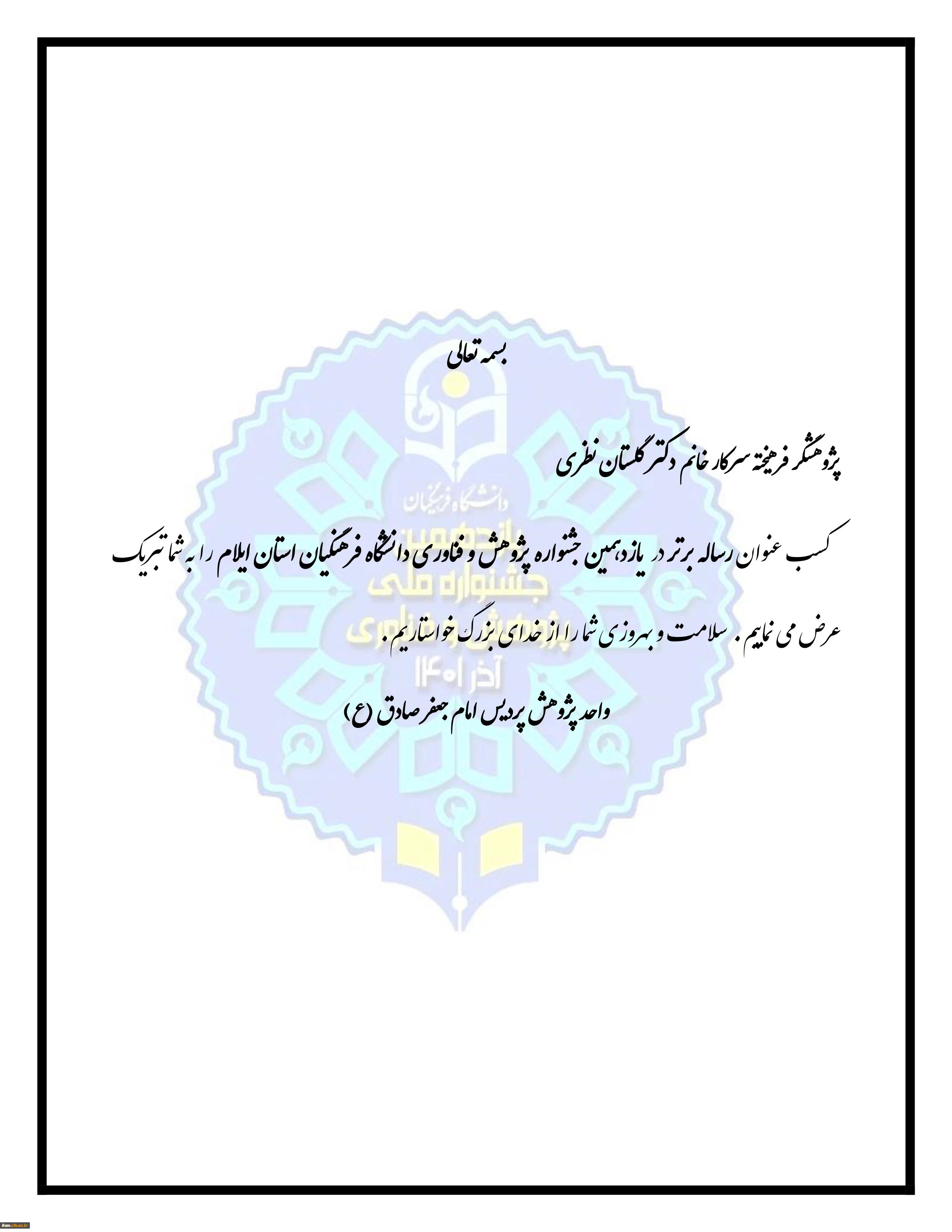 پژوهشگر فرهیخته سرکار خانم دکتر گلستان نظری 2
