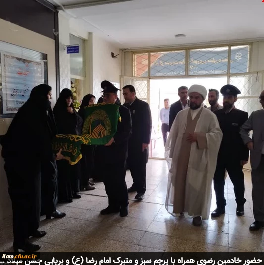 حضور خادمین رضوی همراه با پرچم سبز و متبرک امام رضا (ع) و برپایی جشن میلاد امام رضا (ع) در پردیس امام جعفر صادق(ع) 2