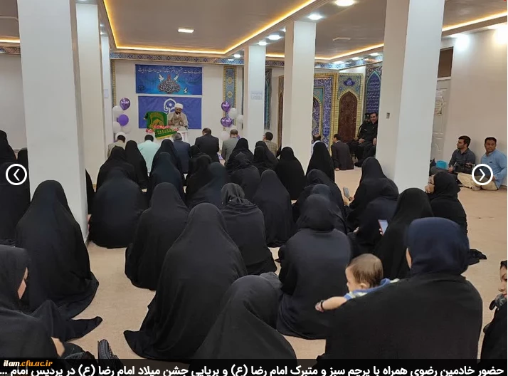 حضور خادمین رضوی همراه با پرچم سبز و متبرک امام رضا (ع) و برپایی جشن میلاد امام رضا (ع) در پردیس امام جعفر صادق(ع) 2