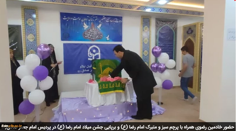 حضور خادمین رضوی همراه با پرچم سبز و متبرک امام رضا (ع) و برپایی جشن میلاد امام رضا (ع) در پردیس امام جعفر صادق(ع) 2