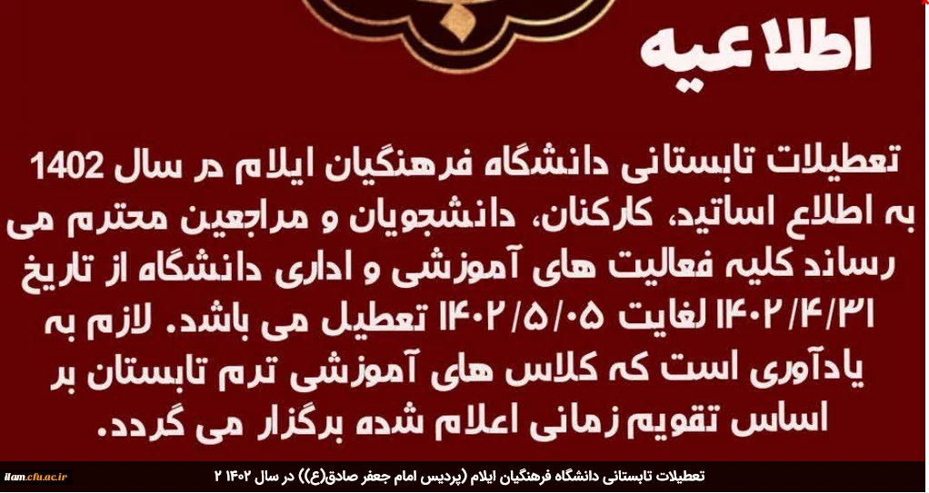 تعطیلات تابستانی دانشگاه فرهنگیان ایلام (پردیس امام جعفر صادق(ع)) در سال 1402 2
