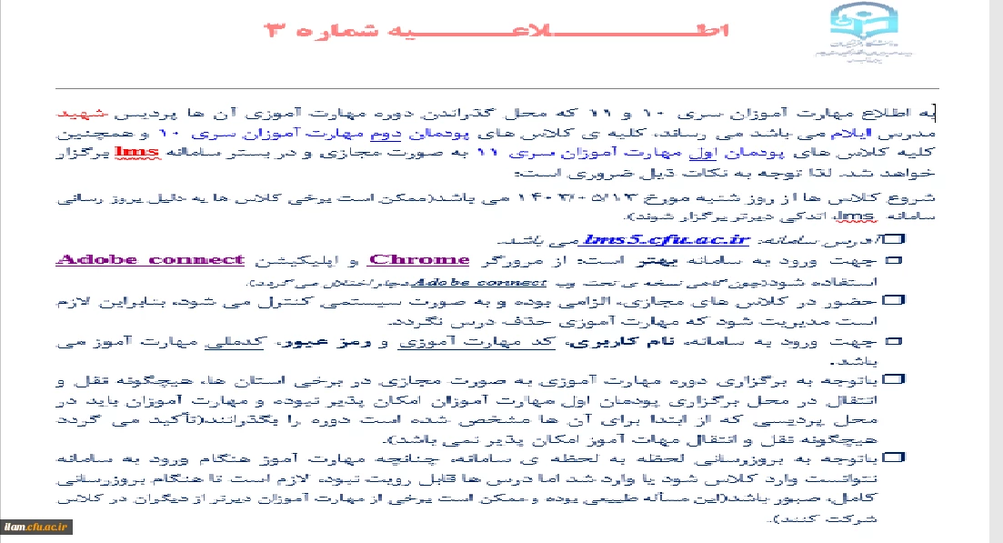 اطلاعیه شماره 3 مهارت آموزان سری 10 و 11 2